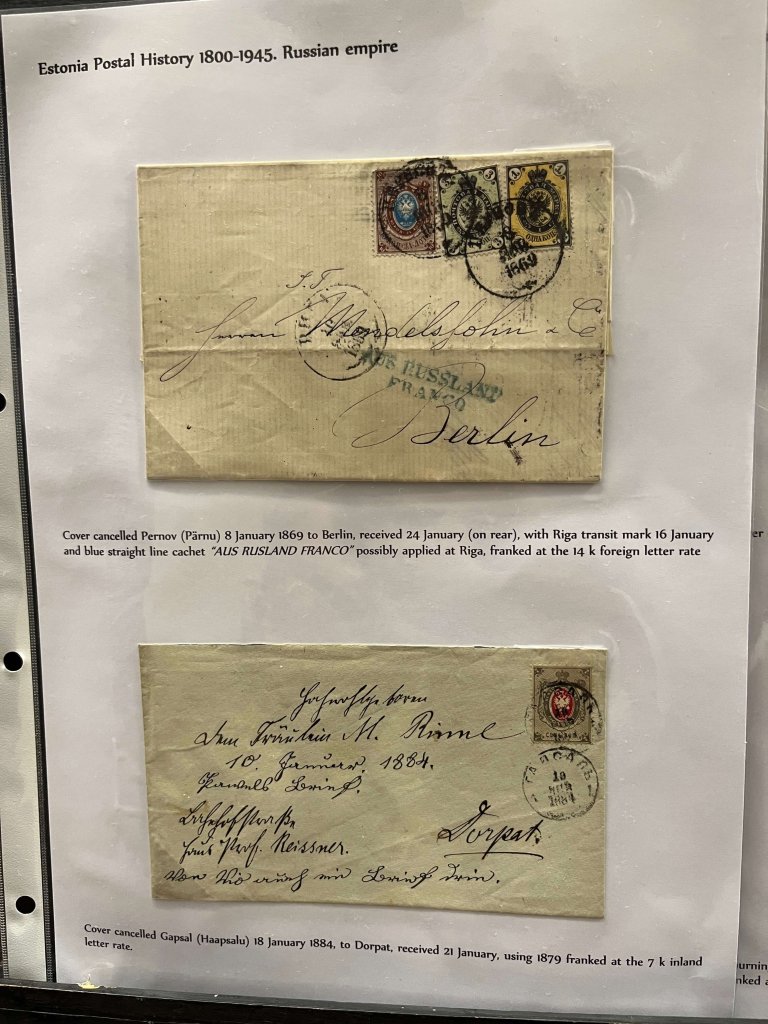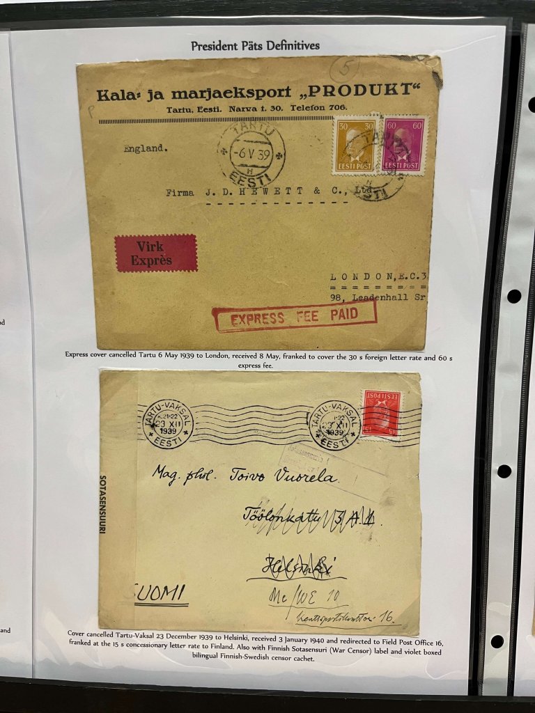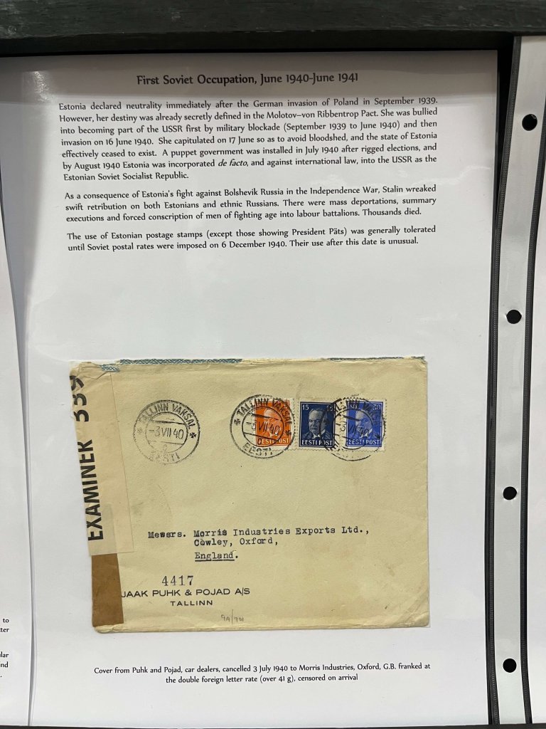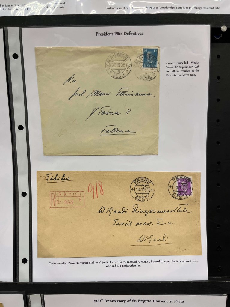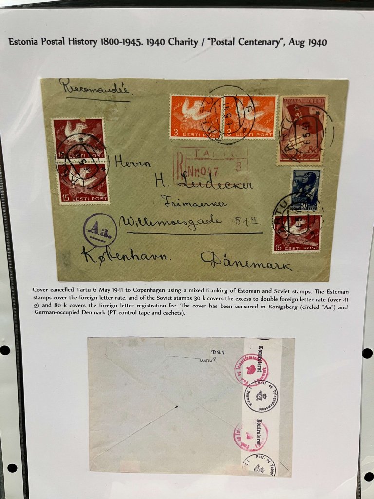 In part one he covered the postal history of Estonia from 1800 to 1945, which included a wide range of material, much of which was extremely scarce. From pre stamp letters through the early adhesives phase, we saw an incredible range of uses and destinations, dovetailing in with the history of Estonia. Finally, he displayed some occupation mail focusing on first the Soviet and then the German occupation.