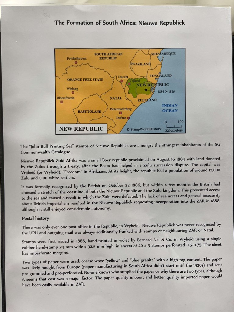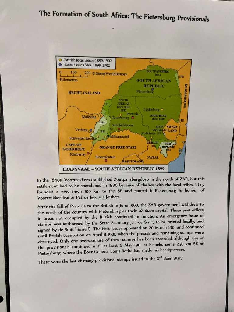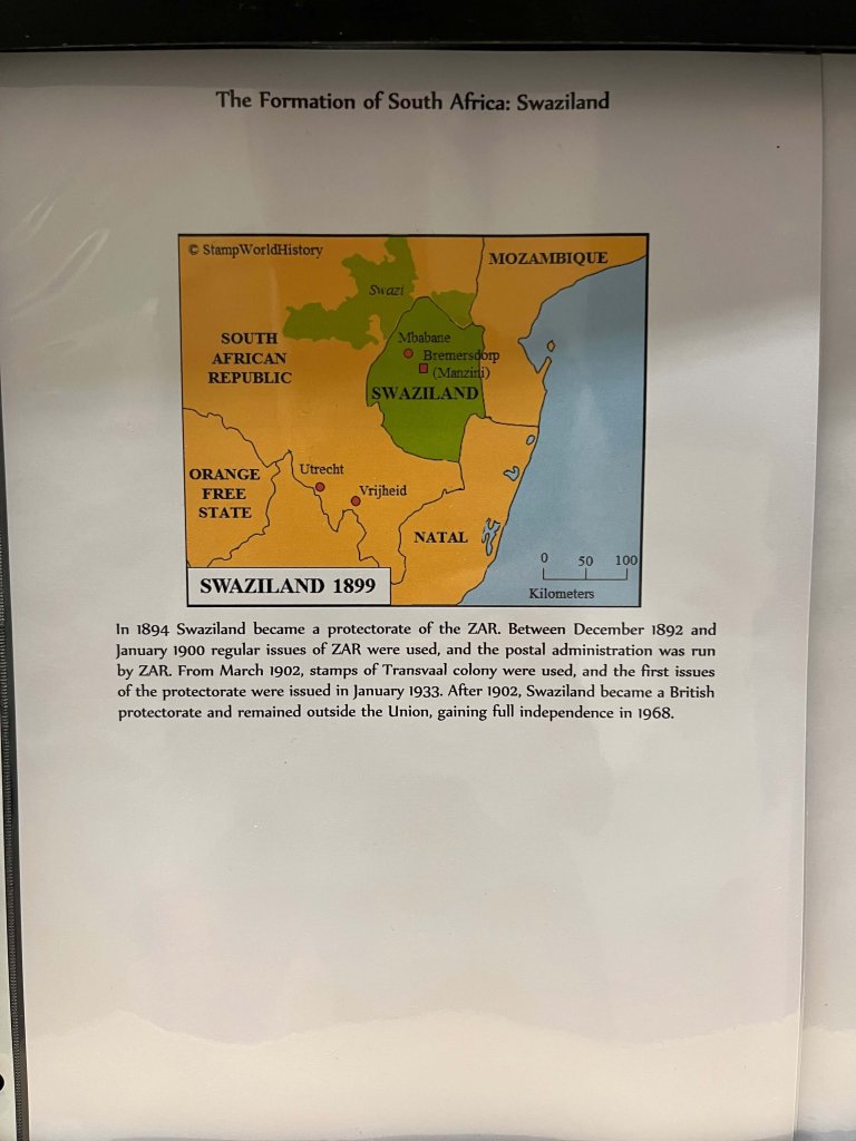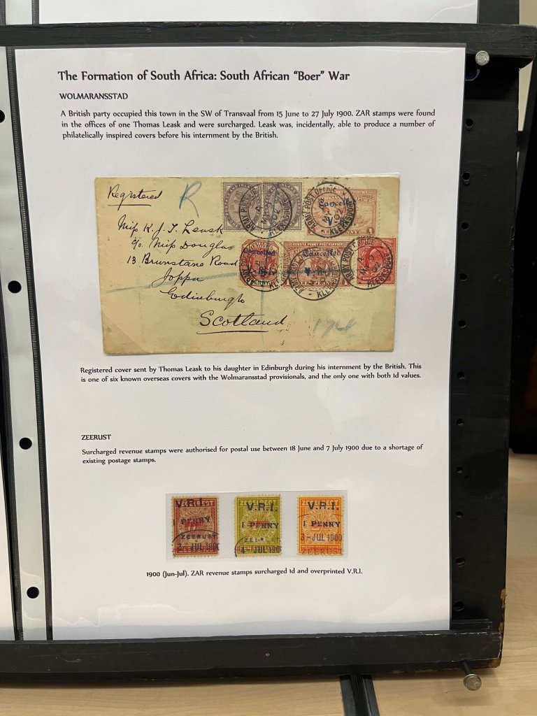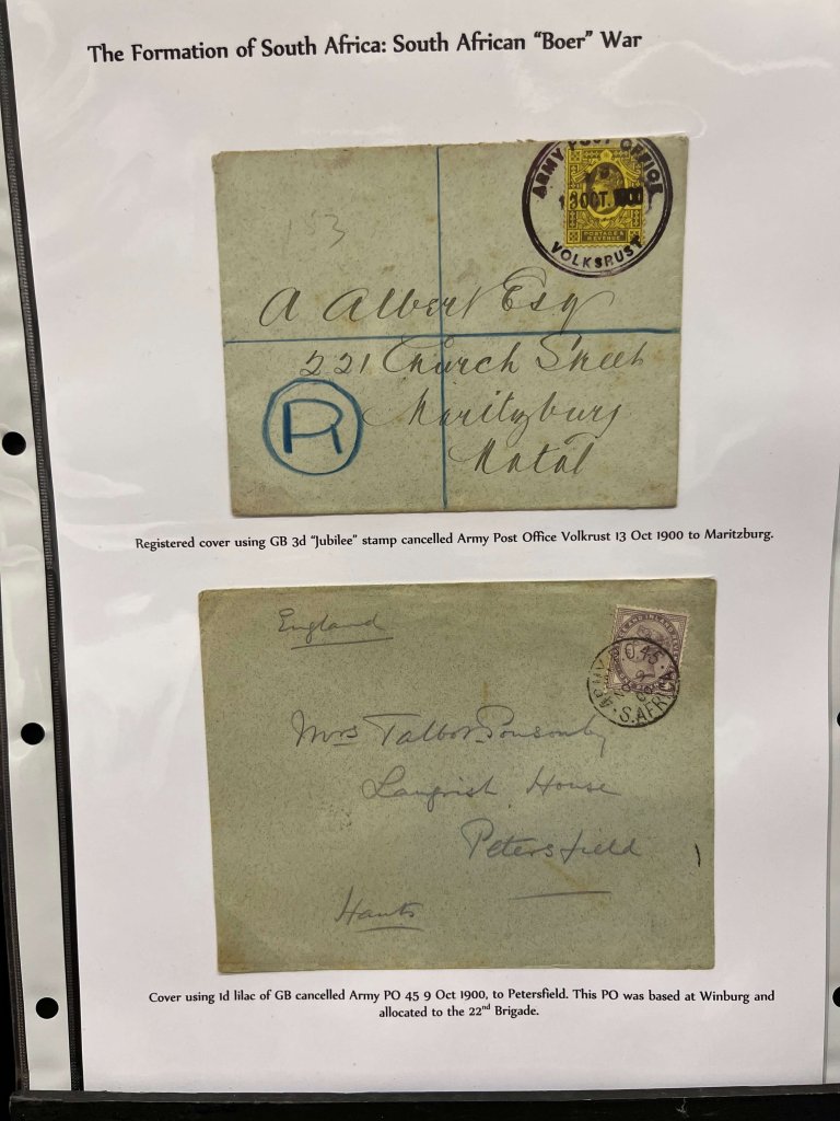 In part two we were treated to a short history of pre Union South Africa, with stamps and mail from all over the continent, including Cape of Good Hope, Orange Free State, Natal, Zululand, Swaziland and the New Republic. Many of the stamp sets were quite challenging to put together and large parts of the postal history were also uncommon.