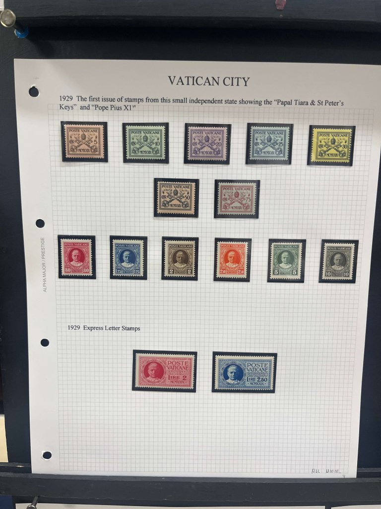The theme was Woodblocks, Emblems, Britannias & more, with a focus on the quality of stamp design and production, along with stories about how the stamps came about and their lifetime and usage. Part one focused on Australian states, Barbados and Brunei and part two included what we believe to be the very first display the society has seen on material from Vatican City and overall, the quality of the material was excellent and everyone enjoyed the talk.